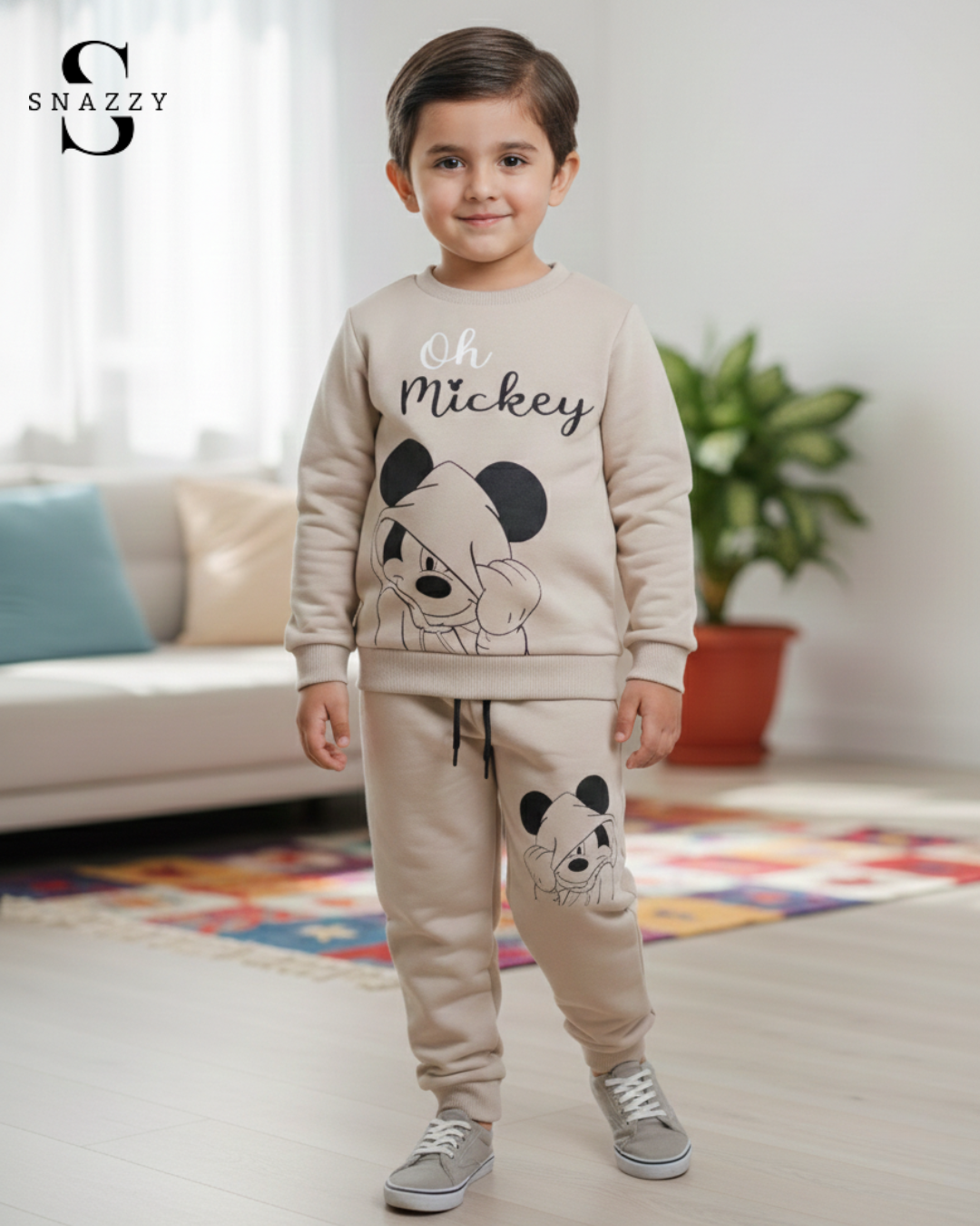 ring fun and warmth to your child’s winter wardrobe with SnazzyGlobal’s “Oh Mickey” Cartoon Casual Winter Set. Designed with a cute Mickey cartoon print, this cozy two-piece outfit includes a soft sweatshirt and matching trousers—perfect for everyday winter wear.
